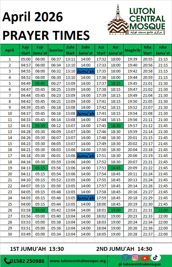 Prayer times Luton Central Mosque